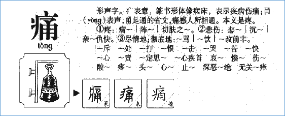 疼痛是一种复杂的生理、心理活动。 应邀开展“疼痛”主题科普讲座,涉及疼痛定义、疼痛的临床意义、中医的疼痛病机分析及中医的疼痛治疗等,难度适合大众阅读。 整理主要内容,与朋友们分享。 疼痛的定义 目前广泛采用的疼痛定义是“与实际或潜在的组织损伤相关的一种不愉快的感受和情绪体验”。 这是国际疼痛分类委员会的创始主席Harold Merskey博士在 1964 年的描述,并在1979 年被国际疼痛研究会采用。 从这个定义可以看出:疼痛是一种复杂的生理、心理活动。 生理方面: 伤害性刺激作用于机体所引起的疼痛感受、以及机体对伤害性刺激的反应,如:躯体运动性反应和/或内脏植物性反应; 心理方面: 常伴随有强烈的情绪色彩。 疼痛的利与弊 利: 痛觉可作为机体受到伤害的一种警告, 引起机体一系列防御性保护反应。 弊: 疼痛作为报警也有其局限性, 如癌症等出现疼痛时,已为时太晚。 长期剧烈疼痛, 对机体已成为一种难以忍受的折磨。 综合来看, 疼痛的弊大于利, 因此, 诊断疼痛、管理疼痛是医生的重要任务。 中国人的“疼”与“痛“ 疼是“疒”字旁与“冬”结合, 专指比较急性发作的、 持续的、尖锐的、难以忍受的疼痛。 痛是“疒”字旁与“甬”结合, 专指慢性持久的、憋胀不通的疼痛。 简单概括一下, 疼描写的是阳性的疼痛, 有往上浮的,尖锐的,浅表的, 开放的,热性的,急性的特点; 痛是阴寒的疼痛, 有内敛的,沉闷的、慢性的特点。 疼痛的现代神经生物学机理 疼痛刺激因素: 1)各种物理化学因素,如刀割、棒击,电刺激、高温、强酸、强碱等均可成为伤害性刺激; 2)生物活性物质:如组织细胞发炎或损伤时释入细胞外液中的钾离子、5-羟色胺、乙酰胆碱、缓激肽、组胺及前列腺素等亦可引起疼痛或痛觉过敏。阿司匹林则具有止痛作用,就是通过抑制前列腺素合成而起效的。 疼痛来源分类: 1)体表疼痛:刺激可来自外界而作用于体表,通过游离神经末梢经特定神经通络上传脑部,这种感觉定位准确。 2)内脏疼痛:刺激也可起自体内,经内脏神经的传入部分上传,其定位较模糊。 3)心理疼痛:疼痛还常由于心理原因引起。 另外,疼痛易受注意力、暗示和期待等心情因素的影响;一个人的既往经历和当时的情境均给疼痛带来很大变异。 疼痛的临床意义及分类 临床上, 疼痛是最常见的症状之一 , 是象征危险的信号。 如果疼痛位置明确、性质明确,可以促使人们紧急行动,避免危险或得到及时救治。 如果疼痛持续时间太久、疼痛程度太重,或者疼痛病因已经去除但疼痛症状仍然持续,已经严重影响了病人的生活、工作,甚至是生命安全,那么疼痛就更应该在不影响对病情的观察的条件下止痛。 特殊疼痛: 牵涉痛: 如心绞痛的疼痛常放散到左肩、臂和腕。 幻肢痛: 如有的截肢患者,甚至先天缺肢畸形的患者仍可感到自己不复存在的或根本未曾有过的肢体的疼痛。 心理疼痛: 焦虑抑郁、某些精神分裂症或癫痫症患者的疼痛可能是精神心理症状。 疼痛部位: 皮肤痛,如皮肤切割、烧烫伤痛、带状疱疹早期的皮肤疼痛; 神经痛,如三叉神经痛、枕大神经痛、坐骨神经痛、带状疱疹后遗痛; 肌骨关节痛,如颈肩痛、小关节紊乱引起的胸背痛、腰痛、肘膝痛、腕管综合征、腱鞘炎,如鼠标指、妈妈手等; 内脏痛: 1)头痛:原发性头痛、继发于全身的头痛(高血压性头痛、发热头痛)、继发于颅内病变的头痛,如脑瘤头痛、脑膜炎头痛,继发于颜面其他器官的头痛(青光眼头痛、孔源性视网膜脱落的头痛、颞颌关节紊乱引起的头痛、牙痛严重引起的头痛) 2)胸痛:心绞痛的胸闷胸痛、心肌梗死的压榨性濒死性胸痛、胸膜炎胸痛、肺癌胸痛等 3)腹痛:肠易激腹痛腹泻、十二指肠溃疡腹痛、胃溃疡腹痛、痛经、子宫内膜异位症腹痛、肿瘤腹腔转移疼痛等 疼痛性质: 刺痛 灼痛 跳痛 钝痛或绞痛 疼痛伴随反应: 引起逃避、诉痛、啼哭、叫喊等躯体行为, 也可伴有血压升高、 心跳加快和瞳孔扩大等生理反应, 也可伴有惊恐等剧烈情绪反应。 疼痛的程度 世界卫生组织(WHO)将疼痛划分成以下5种程度: 0度:不痛; Ⅰ度:轻度痛,可不用药的间歇痛; Ⅱ度:中度痛,影响休息的持续痛,需用止痛药; Ⅲ度:重度痛,非用药不能缓解的持续痛; Ⅳ度:严重痛,持续的痛伴血压、脉搏等的变化。 疼痛的现代医学管理 药物治疗: 1)除能抑制前列腺素合成的非固醇类抗炎药(如阿司匹林、布洛芬等) 2)与阿片受体结合的麻醉性镇痛药(如吗啡、鸦片等) 3)参与下行抑制通路的5-羟色胺、去甲肾上腺素以及某些多肽等 心理疗法: 基于心理因素在疼痛产生与防治上的影响,安慰剂、催眠、暗示、松弛训练和生物反馈等加强正性情绪活动等 手术疗法:永久性破坏或中断疼痛上行解剖通路的外科手术疗法越来越少应用。 用仪器对内源性疼痛抑制系统的有关部位(如粗纤维在其中上行的脊髓后索)进行电刺激。