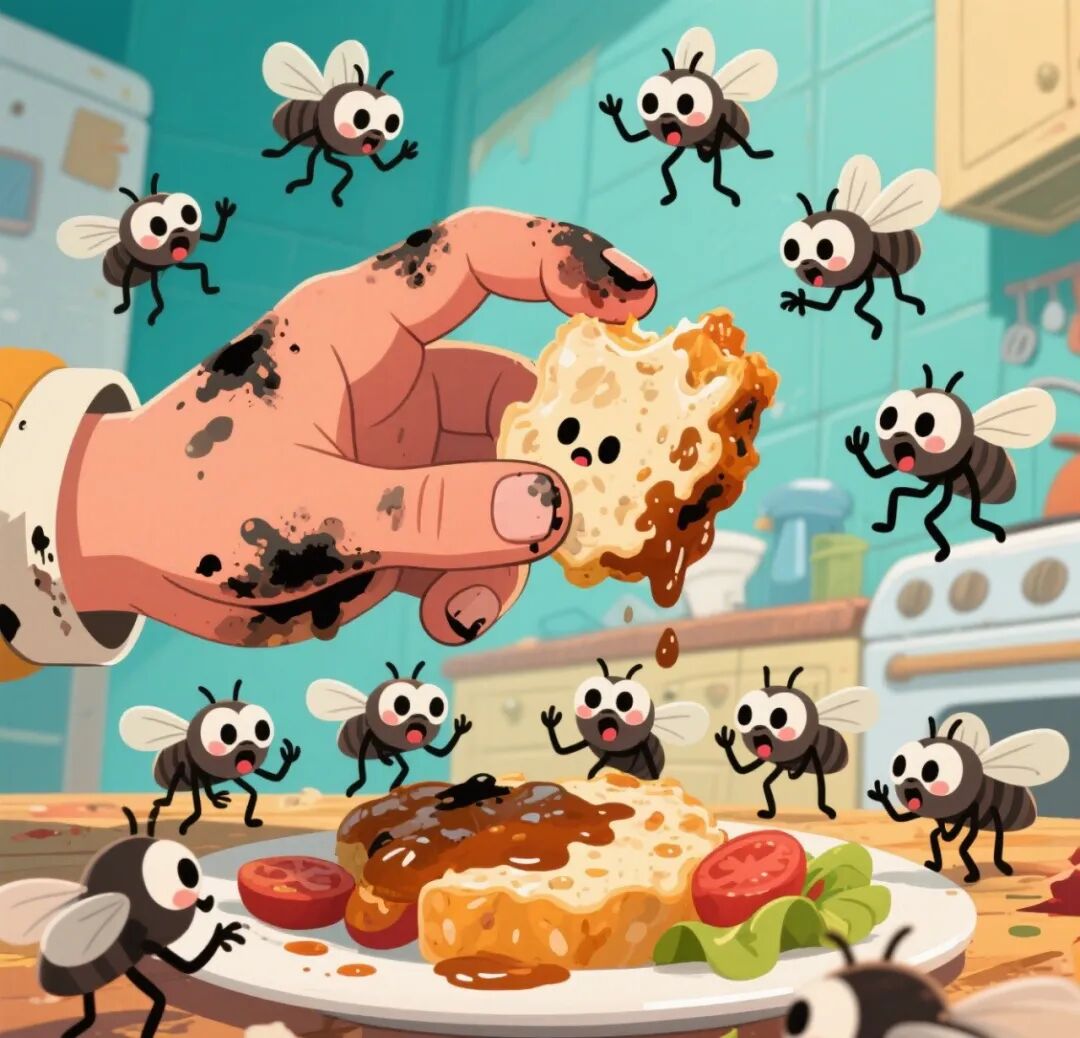 夏天出汗多,要是不勤洗手,手上沾的病菌就像 “快递员”📦,直接把病毒送到嘴里。再加上苍蝇到处乱飞,简直是病菌的 “免费专车”🚌,分分钟让你中招!
